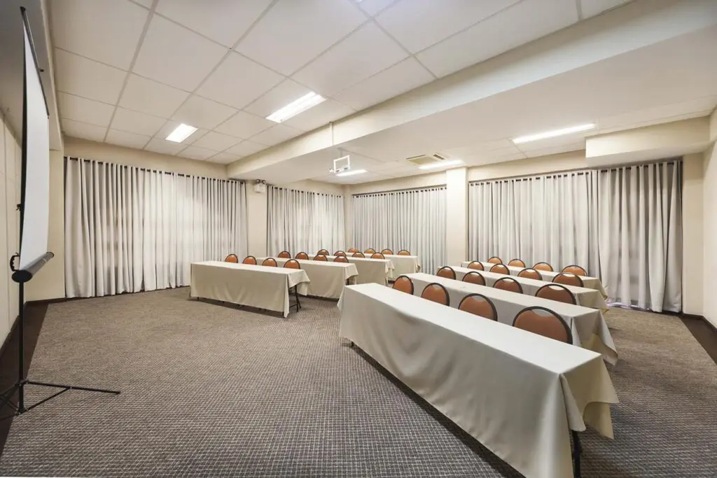 Entre os equipamentos disponíveis estão flip charts, púlpito e equipamentos audiovisuais, como datashow, telão, microfones e sonorização, cobrados à parte. Além disso, é possível contar com garçons treinados e uniformizados, com estrutura para almoços, jantares, coffee break e coquetéis.